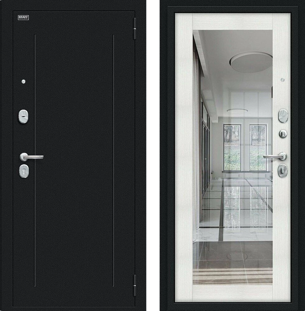 Надежная входная Дверь Браво Флэш Букле черное/Bianco Veralinga премиум класса по цене 32 817 руб. Большая толщина стали защитит от проникновения в ваш дом, квартиру или коттедж. Используется очень качественная фурнитура: замки, цилиндры, ручки, защелки. Покрытие и отделка двери изготовлено под внимательным контролем производителя. Дверь имеет долгий срок службы и гарантию.