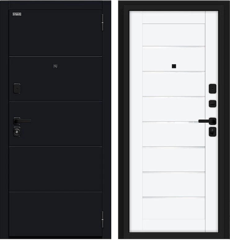 Надежная входная Дверь Браво Прайм/SBlack-Black Shell/White Silk премиум класса по цене 40 167 руб. Большая толщина стали защитит от проникновения в ваш дом, квартиру или коттедж. Используется очень качественная фурнитура: замки, цилиндры, ручки, защелки. Покрытие и отделка двери изготовлено под внимательным контролем производителя. Дверь имеет долгий срок службы и гарантию.